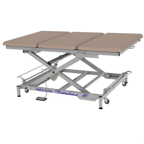 Массажный стол Medicus Titulus  имеет широкое ложе специально адаптированное для  выполнения массажа и терапии по методу Войта. То есть, во время процедуры на столе может находиться не только пациент но сам  врач. Благодаря прочности конструкции и надёжности материалов, общий вес может достигать до 350 кг! С помощью X-образной рамы ложе поднимается строго вертикально, без наклонов и искажений, имея отличную устойчивость даже в движении. Подъём выполняется с помощью электропривода. Диапазон высоты: 43-88 см. У стола имеется три регулируемые секции.